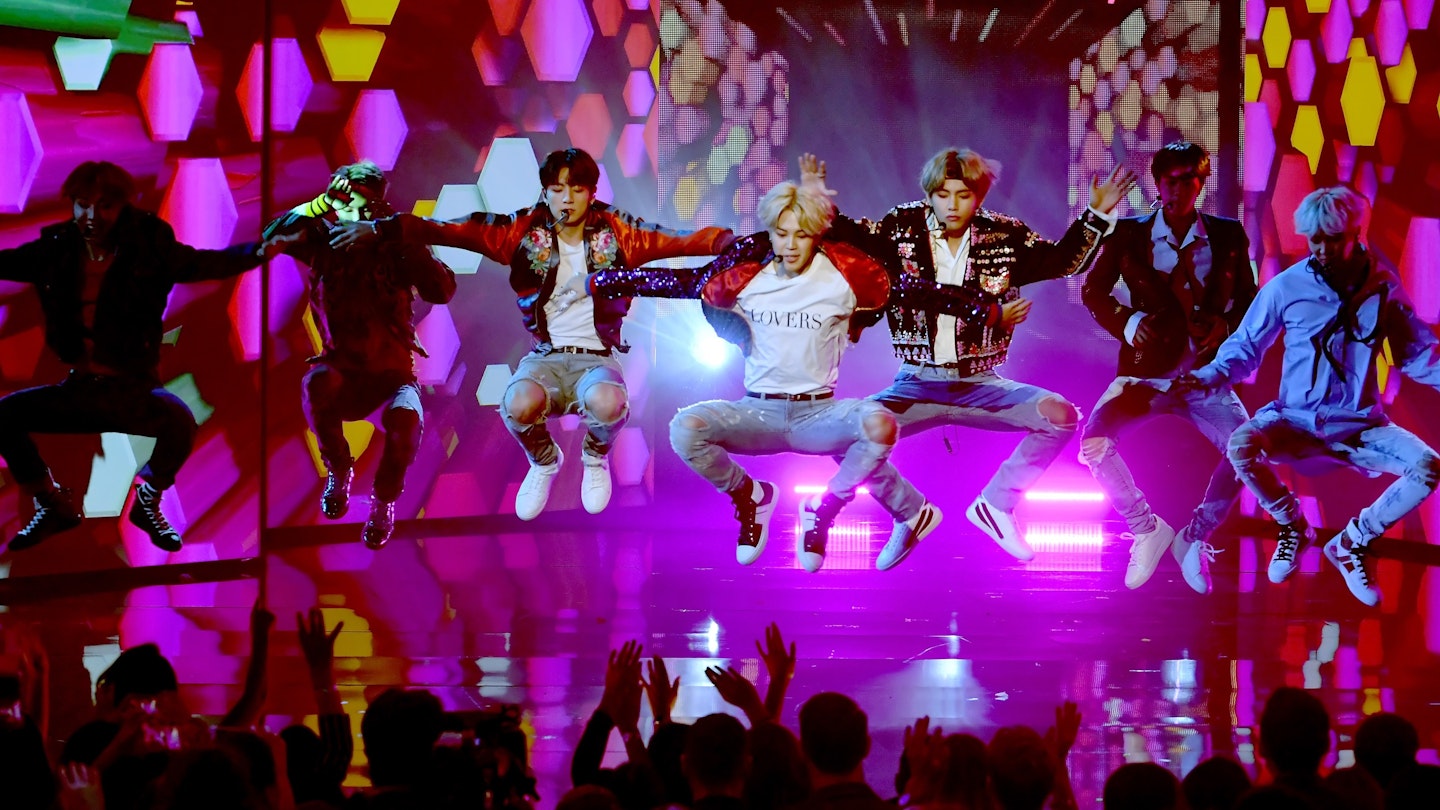 BTS performing onstage during the 2017 American Music Awards © Kevin Winter/Getty Images