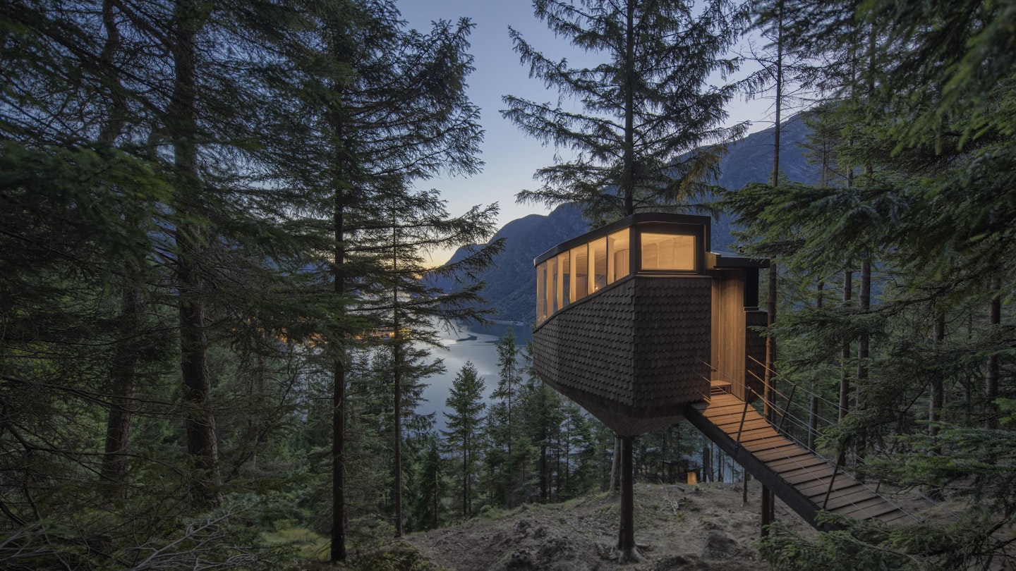 Woodnest treehouse overlooks Norway's Hardanger Fjord © Sindre Ellingsen