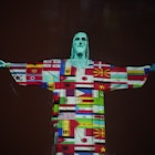 The statue was illuminated with messages of hope during a special mass conducted by a Brazilian archbishop.